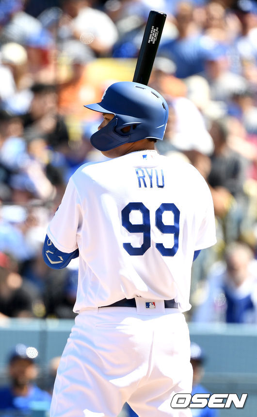 개막전 1타수 무안타 1희생번트, 이튿날 대타로 나와 범타로 물러난 류현진은 이 볼넷으로 시즌 첫 출루에 성공했다. 류현진의 볼넷으로 이어진 무사 1,2루 찬스에서 다저스는 키케 에르난데스가 중전 적시타를 터뜨리며 선취점을 올렸다. /waw@osen.co.kr