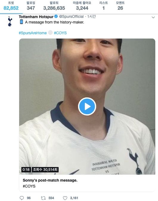 영국 현지 언론들이 손흥민의 골을 두고 “역사의 순간을 만들었다”, “역사책을 직접 썼다”, “역사에 남을 것이다”라고 찬사 일색인 가운데 토트넘의 메시지가 눈길을 끈다.