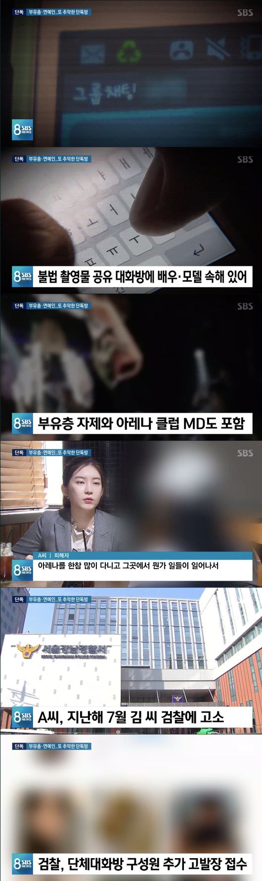 이번엔 배우와 모델이 연루됐다. SBS '8뉴스'에서 현직 배우와 모델이 속한 불법 동영상 촬영 및 유포 단체 대화방을 포착했다.