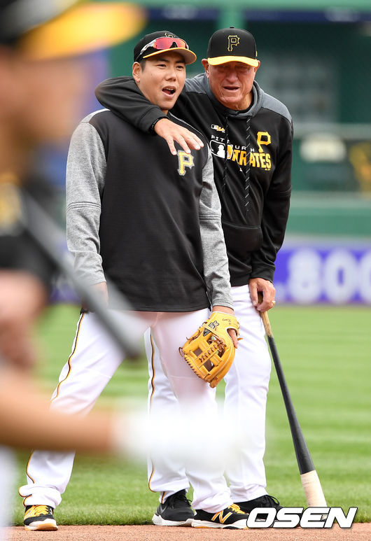 [사진] 강정호-허들 감독(위), 모란-강정호(아래). /피츠버그=최규한 기자 dreamer@osen.co.kr