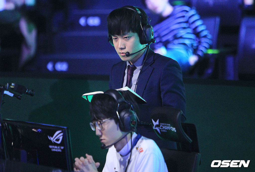 LCK 새내기 담원의 첫 시즌이 롤챔스 플레이오프 1라운드에서 마감됐다. 김목경 감독은 김정수 코치와 함께 개막이후 쉼없이 달려온 선수들을 일일이 어루만지며 위로했다.