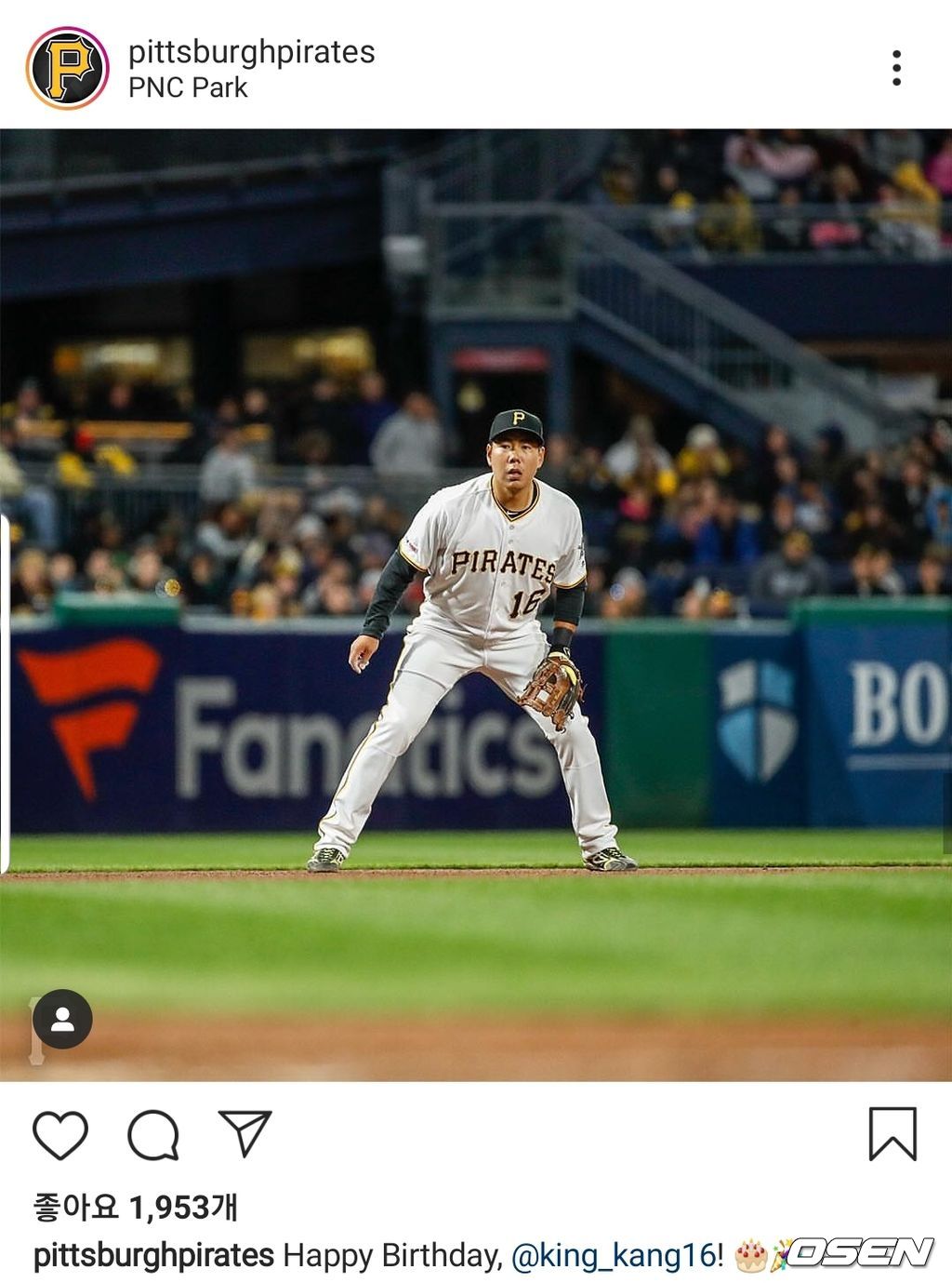 피츠버그는 5일(이하 한국시간) 구단 공식 인스타그램을 통해 강정호의 사진과 함께 'Happy Birthday, @king_kang16!'이라는 축하 문구 그리고 생일 케이크 이모티콘을 남겼다.