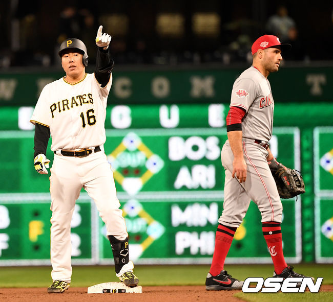 하지만 7회말 결정적인 한 방을 터뜨렸다. 1사 3루에서 조쉬 벨의 2루 땅볼 때 3루 주자가 홈에서 아웃돼 2사 1루, 피츠버그의 흐름이 꼬일 뻔한 상황에 강정호가 등장했다. 그레이의 초구 가운데 몰린 81.8마일 커브를 끌어당겨 좌측 깊숙한 곳에 떨어뜨렸다. 그 사이 1루 주자 벨이 홈까지 들어왔다. 1타점 2루타. 강정호는 3루측 홈 덕아웃을 가리키며 기뻐했다. 승부를 가른 결승타였다.