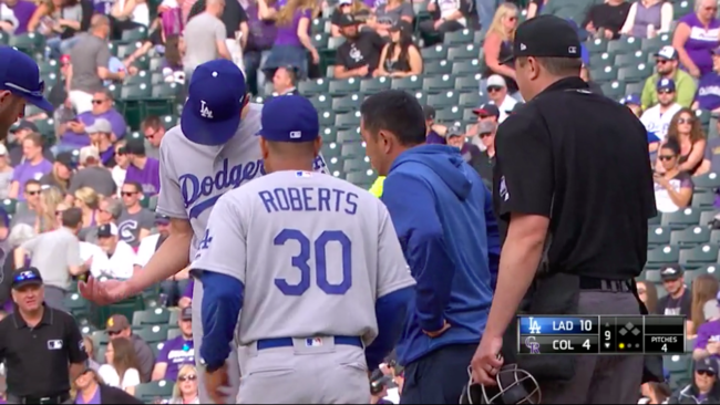 LA 다저스는 6일(이하 한국시간) 미국 콜로라도주 덴버 쿠어스필드에서 열린 콜로라도와의 원정경기에서 10-6으로 승리했다. 그러나 켈리는 예상치 못한 잔부상으로 교체됐다.