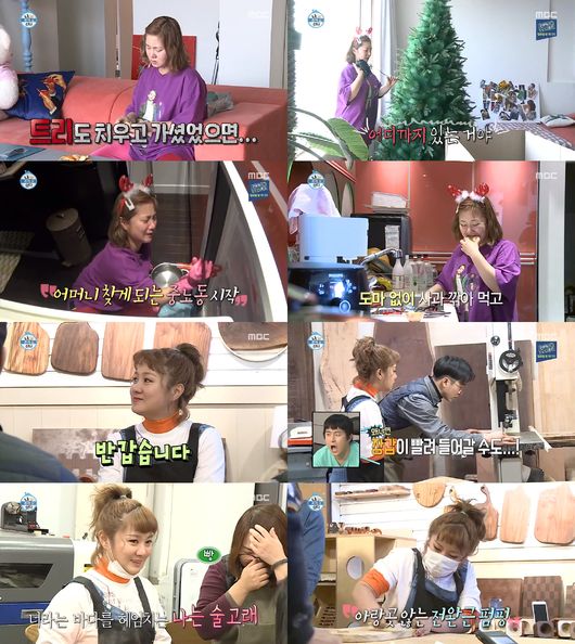 그러나 박나래는 자신의 키보다 큰 크리스마스 트리를 뚝딱뚝딱 정리, 보관할 곳이 없어 처지 곤란이었던 트리 맨 밑층을 봄 내음 가득한 귤나무로 탈바꿈시켜 남다른 아이디어를 뽐냈다. 또한 비장한 눈빛으로 가위를 들고 나타나 냉장고의 성에를 손수 부수며 신이 내린 전완근을 불태워 냉동실 속 봉인된 식재료들을 하나씩 되살려냈다.