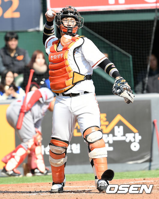 한화 이글스가 포수 엔트리가 일찌감치 모두 소진되는 상황이 발생했다. 긴급하게 신인 내야수 노시환이 포수 마스크를 쓰게 됐다.