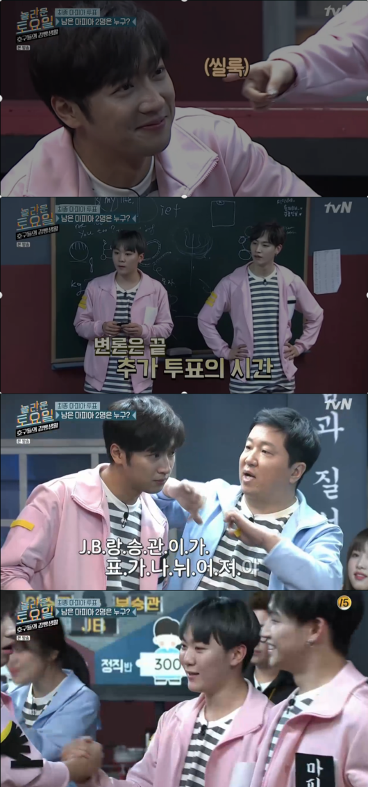 지난 6일 오후 방송된 tvN ‘놀라운 토요일-호구들의 감빵생활’에서는 모범수가 마피아 이수근, 부승관, JB를 찾아내는데 성공하고 영치금을 얻었다.