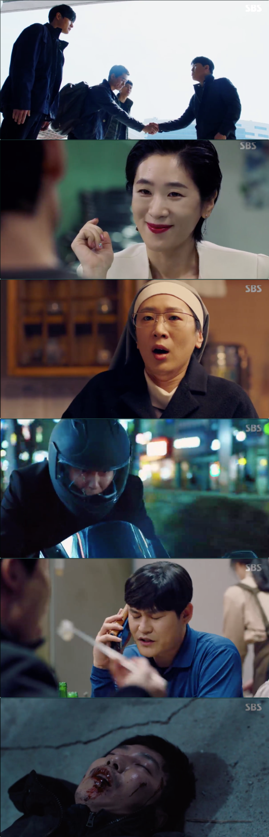 지난 6일 오후 방송된 SBS ‘열혈사제’에선 김해일(김남길)이 한성규 신부(전성우)와 김인경(백지원) 수녀와 함께 도박판에 나섰다.