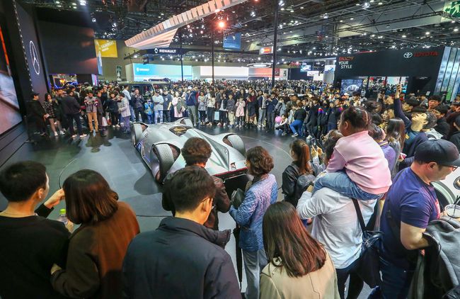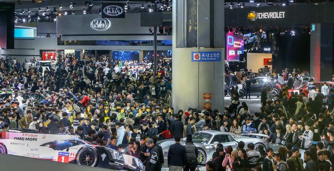 2019서울모터쇼 폐막을 하루 앞둔 6일 오후 경기도 고양시 킨텍스에 구름 인파가 몰려 들었다. 말 그대로 발 디딜 틈이 없을 정도다.