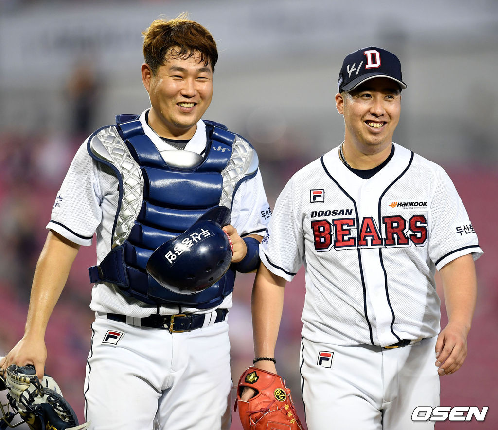 이날 양의지가 상대한 두산의 선발 투수는 ‘옛 동료’ 유희관이었다. 절친으로 알려진 두 선수는 지난 미디어데이에서 유쾌한 입담을 주고 받기도 했다.