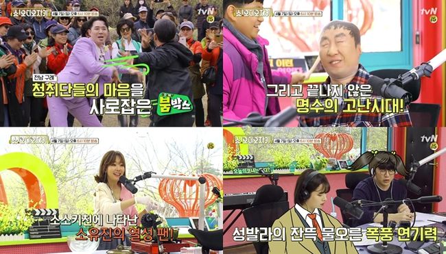 박명수는 축제를 방문한 시민들과 함께 즉석 퀴즈 대결을 펼친다. 게스트로 나선 박슬기가 화려한 입담으로 이른 새벽 텅 빈 부스 앞 무대를 인파로 북적이게 하자 한껏 흥이 오른 박명수는 계속되는 수난에도 잇몸 만개 웃음으로 대결을 진행, 폭소를 안길 예정. 소유진은 ‘소소키친’ 코너에서 구례의 소문난 손맛 고수로부터 비법을 전수받아 직접 요리에 나선다. 구례를 대표하는 봄철 음식은 무엇일지, 오디오 설명만으로 뚝딱 완성된 맛은 어떨지 궁금증을 드높인다.
