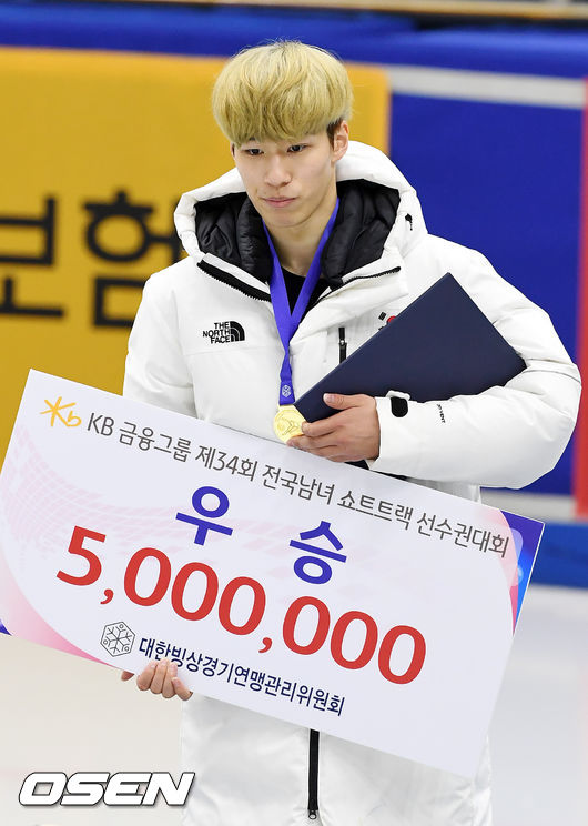 황대헌은 7일 목동실내빙상장서 열린 KB 금융그룹 제 34회 전국남녀 쇼트트랙-스피드 스케이팅 선수권대회에서 남자부 종합 우승을 차지하며 태극마크를 달았다.