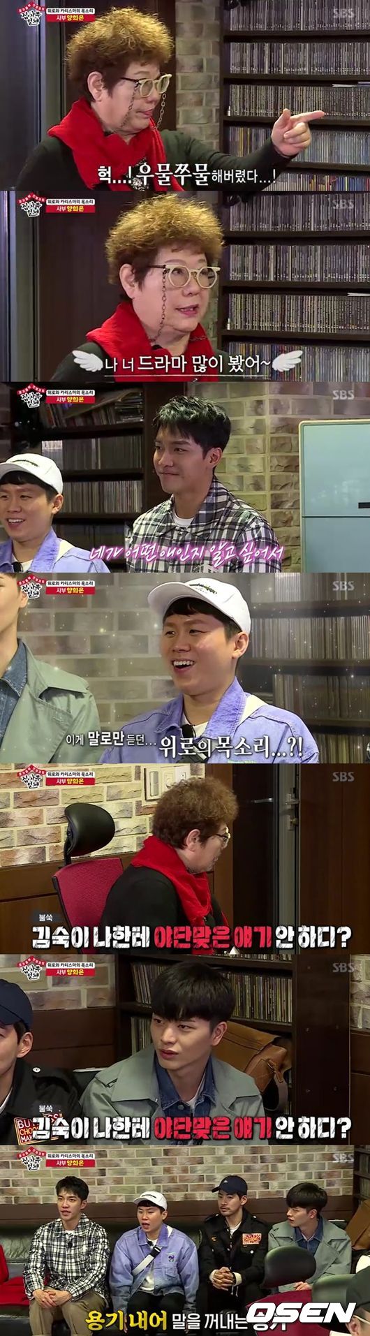 이승기는 나이부터 고향까지 말하자, 양희은은 "그런거 하나도 쓸데없다"면서 "너 드라마 많이 봤다, 너가 어떤 애인지 알고 싶어서, 드라마 할 때 굉장히 열심히 하는 사람이란 걸 알았다"며 무심한 듯 툭툭 따뜻한 말을 전했다. 카리스마와 위로를 동시에 가진 유일한 목소리를 실감하게 했다. 양희은은 계속해서 멤버들에게 "쫄지마라, 마음대로 해라"면서 츤데레 모습을 보였다.