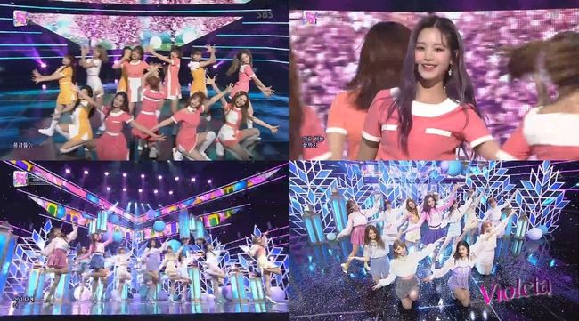 '비올레타' 무대에서는 아이즈원의 소녀 감성이 빛을 발했다. 봄을 맞이하는 파스텔톤, 반짝이는 의상이 어우러져 아이즈원만의 신비로운 매력이 더욱 배가됐다. 청순미가 돋보이는 포인트 안무와 화려한 군무가 시선을 모았다.