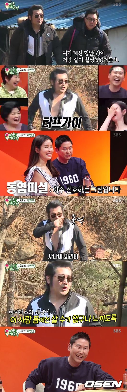 잠시 떡이 찌는 사이, 산책을 나섰다. 이상민은 "저기 닭이 있다"고 이동, 김보성은 "닭이 제일 싫다"면서 어릴 적 트라우마가 있다고 했다. 이상민은 깜짝 놀라며 "치킨 안 먹냐"고 질문, 김보성은 "치킨 안 먹는다"며 닭이 무서워 치킨도 안 먹는다고 했다. 김보성은 "닭하고 나하고 옥상에 가둬놓으면 난 의리로 뛰어내린다, 근데 달걀은 좋아해"라며 반전 매력을 보여 웃음을 안겼다. 무엇보다 닭이 나왔다는 말에 줄행랑치며 도망쳐 배꼽을 잡게 했다.