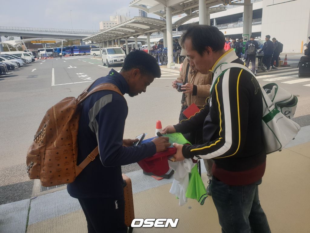 우라와의 홈 구장이 위치한 사이타마로 이동하기 위해 버스에 탑승하기 전 전북 선수단은 깜짝팬들을 만났다. 일본 축구팬들이 K리그 전북 현대 선수단의 사인을 받기 위해 공항까지 나온 것.