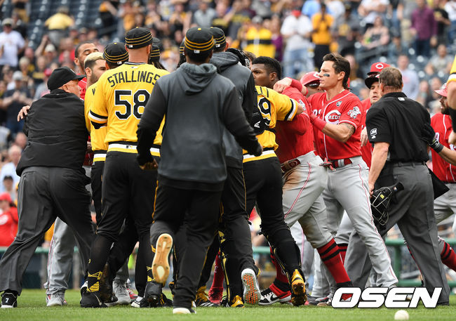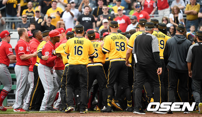 그러자 양 팀 선수들도 덕아웃을 비우고 뛰쳐 나왔다. 벤치 클리어링이 발생했다. 이 과정에서 신시내티 야시엘 푸이그가 흥분했고, 양 팀 선수들이 한 데 뒤엉켰다. 신시내티 벨 감독을 비롯해 푸이그, 투수 아미르 가렛, 피츠버그 투수 펠리페 바스케스, 키오네 켈라 등 5명이 퇴장을 당했다.