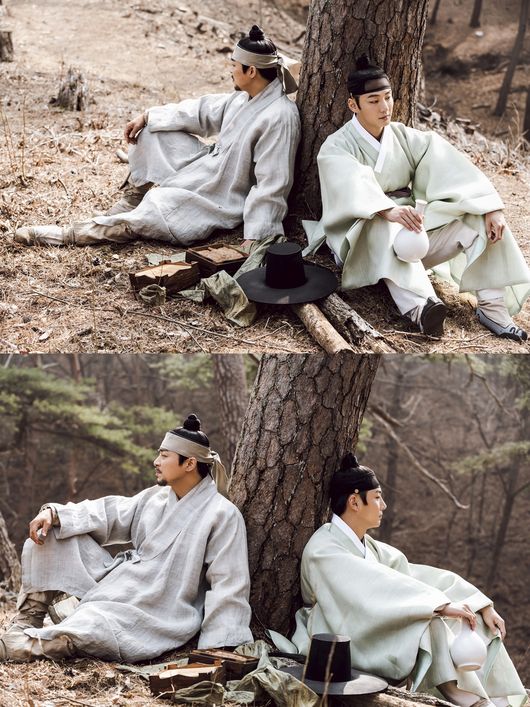 공개된 사진 속 조정석과 윤시윤은 인적이 드문 산 속 곧게 뻗은 나무에 등을 기댄 채 나란히 앉아 있다. 훗날 농민군과 토벌대로 갈라질 수밖에 없는 극중 형제의 운명을 보여주듯 한 공간에 있지만 서로 다른 곳을 바라보는 두 남자의 눈빛이 쓸쓸하고도 애처롭다. 동시에 정면을 응시하지 않고도, 표정과 눈빛만으로 극중 인물들의 관계성과 감정까지 오롯이 녹여낸 조정석-윤시윤 두 배우의 표현력이 감탄을 자아낸다.