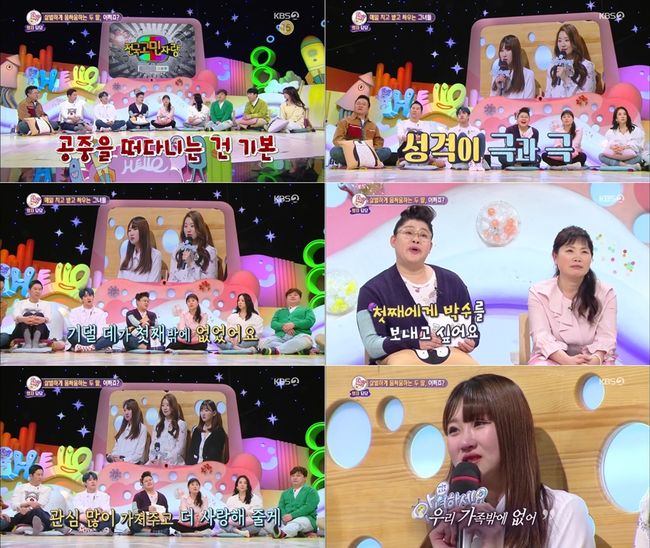 고민주인공의 27살, 26살 연년생인 첫째 딸과 둘째 딸은 매일 밤 서로의 머리채를 잡고 육탄전을 벌이며 리모컨과 밥상, 심지어는 족발까지 던지면서 싸운다고 해 충격을 안겨주었다.