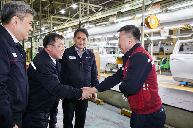 지난 1일 쌍용자동차 평택공장에서 열린 취임식 후 예병태 신임 사장은 곧바로 생산현장을 방문해 현장직원들과 직접 일일이 인사를 나누며 직원들을 격려했다.