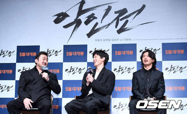 9일 오전 서울시 강남구 신사동 CGV 압구정에서 진행된 영화 ‘악인전’(감독 이원태, 5월 개봉) 제작보고회에는 배우 마동석, 김무열, 김성규를 비롯해 메가폰을 잡은 이원태 감독이 참석했다.