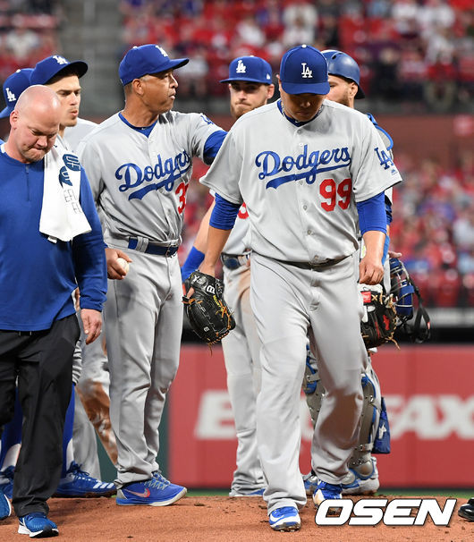 류현진은 9일(이하 한국시간) 미국 미주리주 세인트루이스 부시스타디움에서 치러진 2019 메이저리그 세인트루이스 카디널스전에 선발등판, 1⅔이닝 2피안타(1피홈런) 1볼넷 1탈삼진 2실점을 기록한 뒤 강판됐다. 2회말 2사 후 마일스 마이콜라스에게 초구를 던진 뒤 이상 증세를 보이며 마운드를 내려갔다.