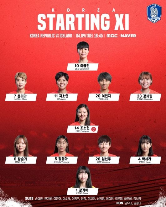 1차전에 선발로 나섰던 이민아, 전가을, 이영주 등도 이날 선발 라인업서 제외됐다. 이금민이 최전방 공격수로 출격했고, 문미라 지소연 여민지 강채림이 2선에서 지원 사격한다. 포백은 장슬기 정영아 임선주 박세라가 형성한다./dolyng@osen.co.kr