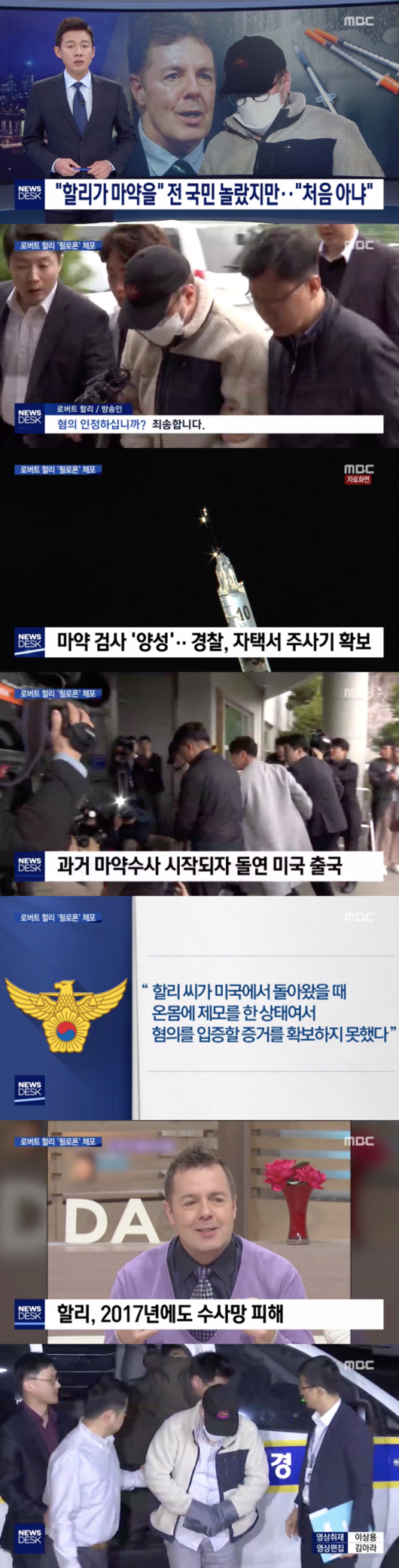 MBC ‘뉴스데스크’는 9일 오후 “로버트 할리가 과거 2차례 마약 혐의 조사를 받은 것으로 드러났다”라고 보도했다.
