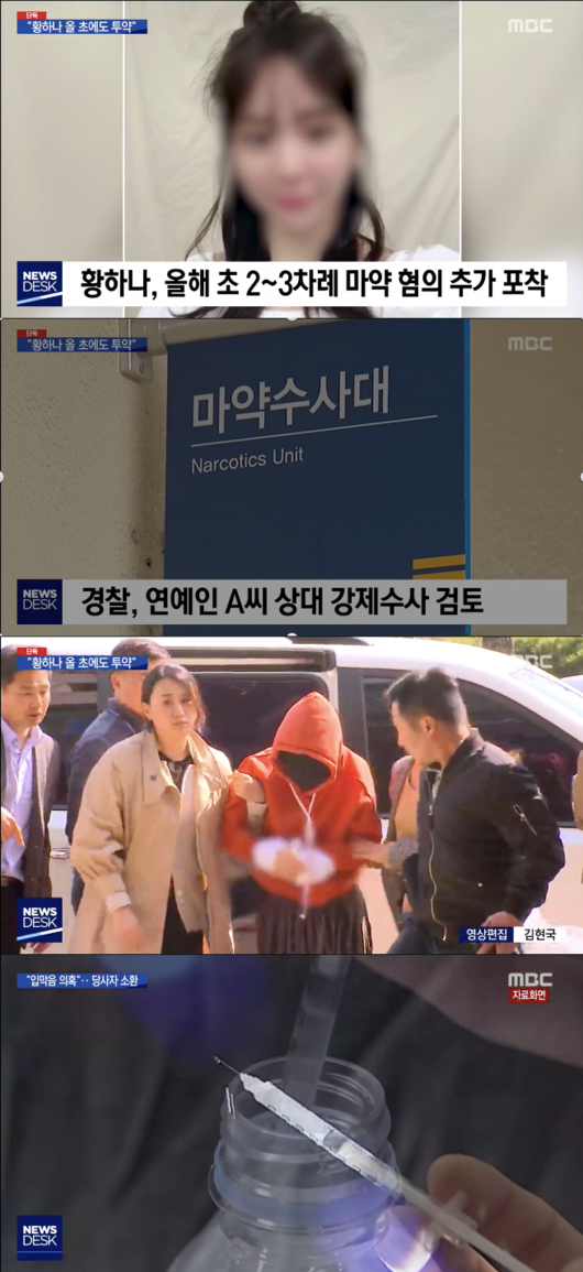 9일 오후 방송된 MBC ‘뉴스데스크’에서 황하나의 마약 수사에 대해서 보도 했다.