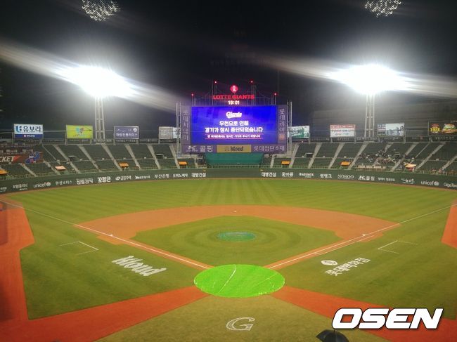 부산 사직구장의 경기가 결국 우천으로 노게임 선언됐다.
