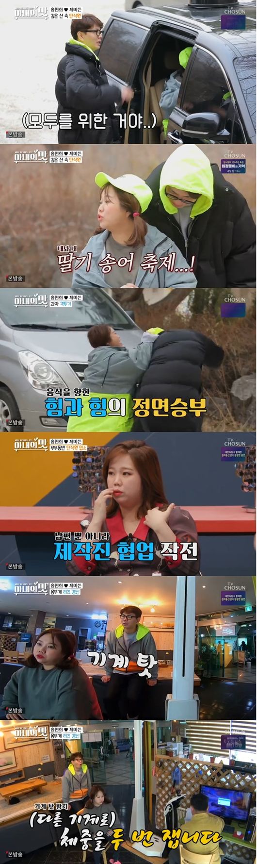 홍현희와 제이쓴 부부가 그려졌다. 새벽4시부터 제이쓴이 혼자 어딘가로 이동했다. 매니저와 무언가 작당모의를 짰다. 알고보니 단식원행이었다. 이어 홍현희에겐 딸기축제라고 속이며 함께 이동, 이를 알리없는 홍현희는 행사인 줄 알며 콧노래를 불렀다. 남편 제이쓴까지 바람잡이 했고, 홍현희는 결국 딸기와 송어를 만날 생각에 노래에 심취했다.
