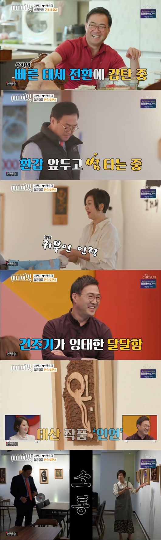 이만기는 수준급 서각실력을 보였다. 서각 갤러리까지 공개하며 작가로 변신했다. 아내는 사모님 룩으로 한 껏 꾸민 후 이만기가 있는 곳에 도착, 30인 분 음식까지 대령해 내조의 여왕으로 등극했다. 이만기는 아내에게 "귀부인 같다, 예쁘다"며 쑥스러운 듯 칭찬을 무심하게 던지며 수줍어했다. 건조기 선물이 낳은 달달함이었다.