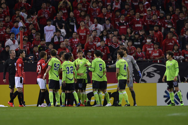 전북의 승리로 끝났지만 경기는 치열했다. 특히 종료 직전 우라와의 공세 상황에서 양 팀 선수들은 신경전을 펼쳤다.