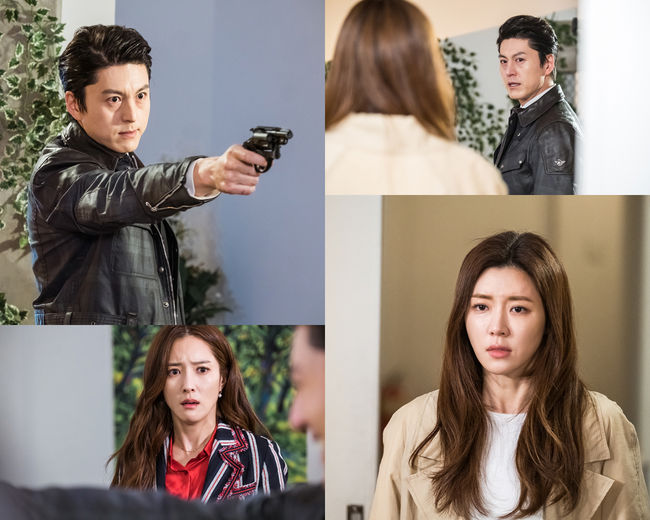 또 다른 사진에서는 매서운 눈빛으로 누군가에게 권총을 겨누고 있는 인욱과 그를 바라보며 어쩔 줄 모르는 해라의 표정이 긴장감을 고조 시킨다. 앞서, 인욱은 해라에게 도망친 아내가 다른 남자와 사랑에 빠졌다면 두 사람 모두 죽이겠다고 말했다. 과연 인욱의 총구는 누구를 향하고 있을지 궁금증을 높이고 있다.
