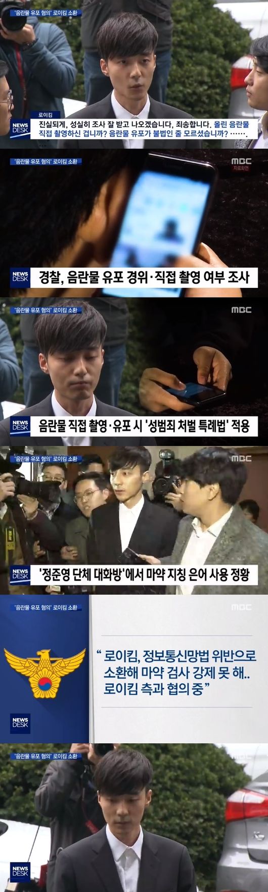 10일 오후 방송된 MBC '뉴스데스크'에서는 음란물 유포 혐의로 경찰에 소환된 로이킴에 대해 보도했다.