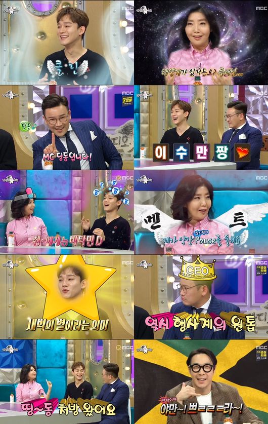 그런가 하면 엑소 멤버 중 ‘라디오스타’에 유일하게 두 번 출연한 첸은 “처음 출연했을 소속사에 ‘말주변이 뛰어나지도 않은데 왜 저 혼자 출연하느냐’고 여쭤봤다. 그러자 ‘허튼소리 안 할 것 같아서’라고 하시더라”고 말했다.