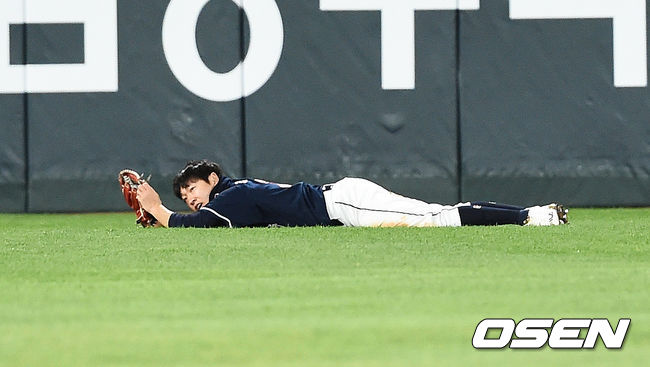 정수빈이 영웅이 됐다. 한참을 달려온 정수빈은 몸을 날렸고, 공을 정수빈의 글러브로 빨려 들어갔다. 이용찬은 팔을 번쩍 들어 정수빈에게 고마움을 전했다.