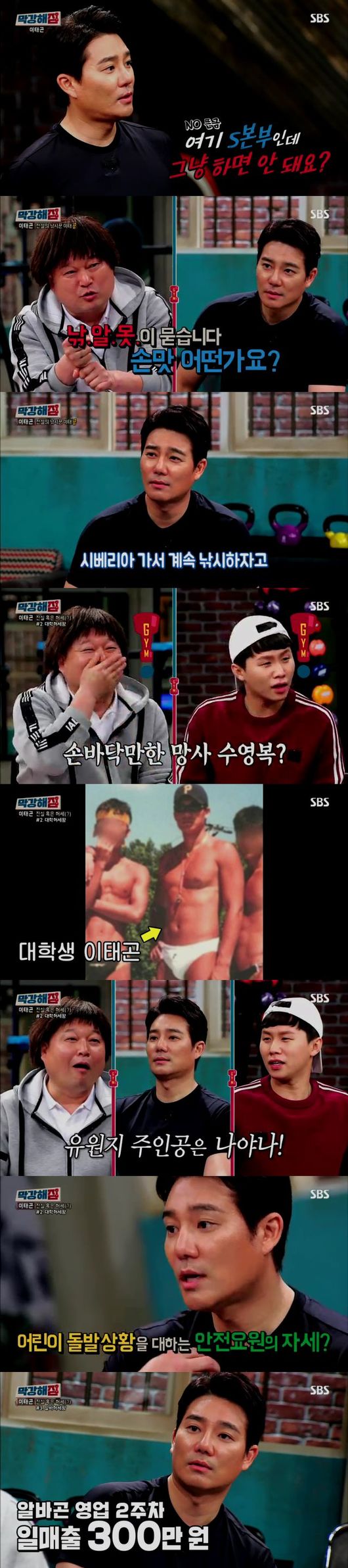 이태곤은 “저 때 흰색 수영복을 입고 항상 센터에 서있었다”라며 수상안전요원으로 아르바이트를 할 당시의 에피소드를 공개했다. 이태곤은 “제일 위험한 건 아이들이다. 아이들은 앞으로 고꾸라지면 물을 마셔버린다. 아이들만 보고 있었다”라고 이야기했다. 그는 “3초 이상 고개를 안 들면 위험한 상황이다. 뛰어가서 아이를 들어보면 100프로 물먹고 있었다”라고 덧붙였다. 이어 자신을 스스로 “생명의 은인”이라고 칭해 웃음을 안겼다.