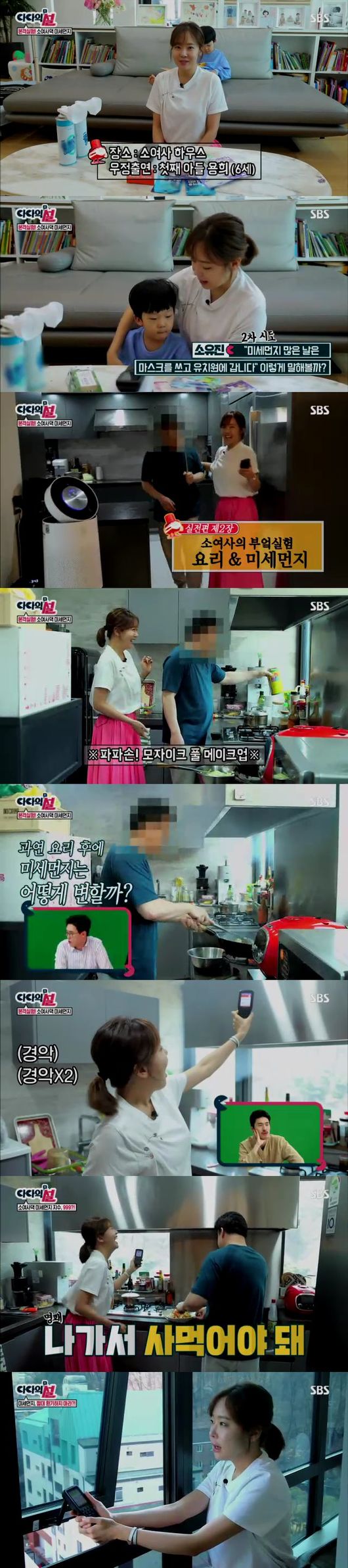 이에 소유진은 남편 백종원을 부르며 “방금 요리를 해가지고 말이야”라며 당황한 모습을 보였다. 한편 스튜디오에서 이를 지켜보던 조동찬 의학전문 기자는 “가습기가 미세먼지 농도를 높일 수 있다는 연구 결과가 있다”라고 전해 멤버들을 놀라게 했다.