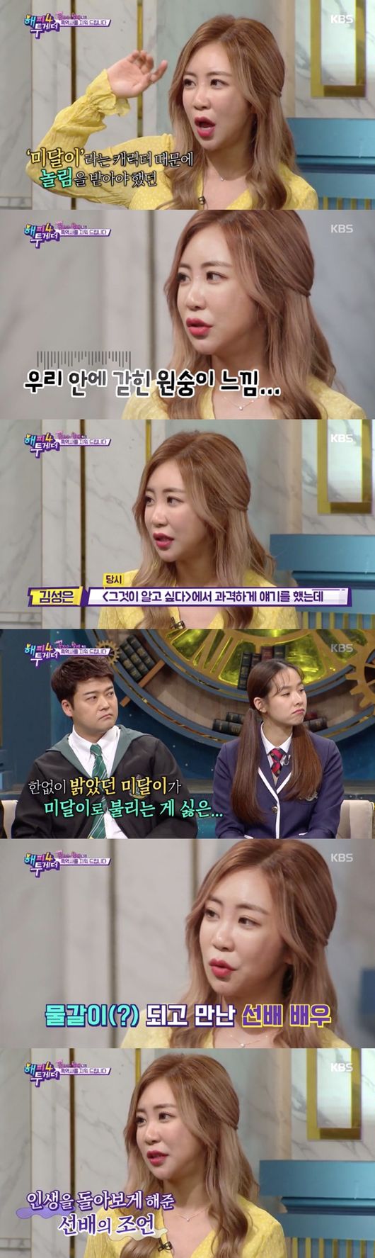 현재 김성은은 많이 단단해진 모습이었다. 그는 "미달이라는 캐릭터가 5년 전부터 감사하게 느껴졌다. 주위에 좋은 분들 덕분에 인생을 돌아보게 됐다. 지금 세대도 공감하는 연기를 했다는 것이 뿌듯하다"고 전했다.