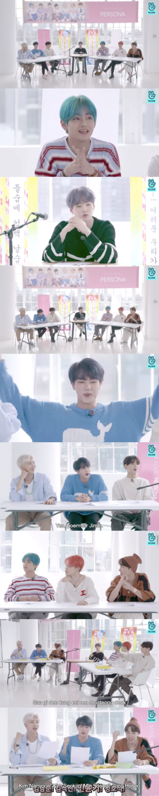 방탄소년단은 지난 12일 오후 6시 새 앨범 ‘맵 오브 더 소울 : 페르소나’를 발표하고 컴백했다. 전 세계 팬들의 관심을 받으며 컴백한 만큼 V라이브를 통해 전 세계 팬들과 소통했다.