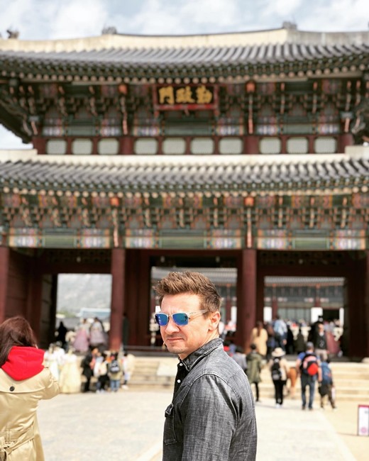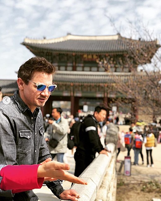제레미 레너는 이날 자신의 인스타그램에 경복궁을 방문한 사진을 올렸다. 아름다운 벚꽃 나무와 경복궁을 배경으로 사진을 찍는 제레미 레너의 모습이 한국 팬들의 흐뭇한 미소를 유발한다.