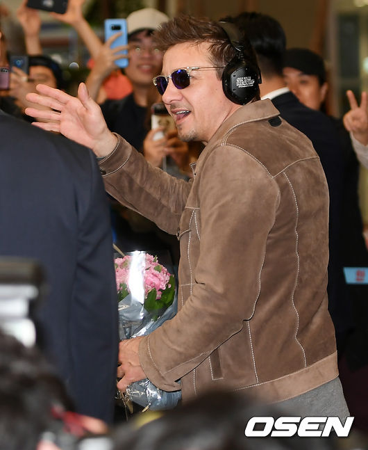 이후 약 40분 뒤에는 제레미 레너가 자신의 캐리어를 직접 끌고 인천국제공항에 도착했다. 커다란 헤드폰을 착용한 그는 함박미소를 지으며 팬들의 사인 요청에 응하는 등 화끈한 팬서비스로 깊은 인상을 남겼다.