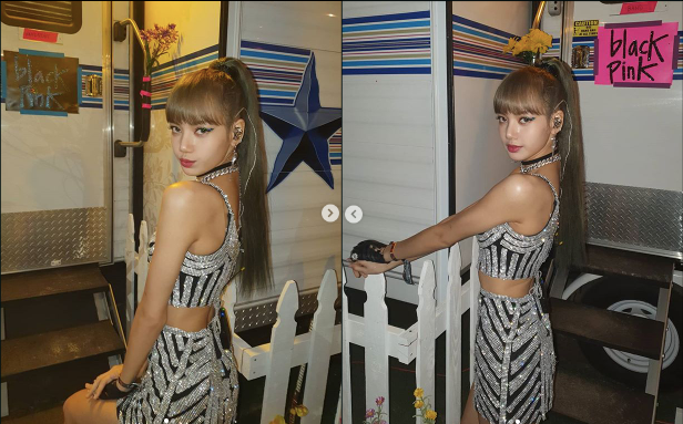 사진 속 리사는 화려한 무대의상을 입고 카메라를 응시하며 카리사마를 드러냈다.