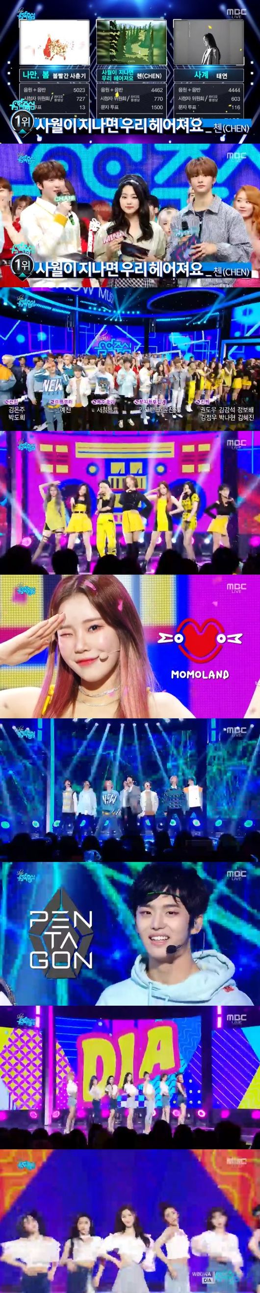 그룹 엑소 첸이 '음악중심' 4월 둘째주 1위 트로피를 거머쥐었다.