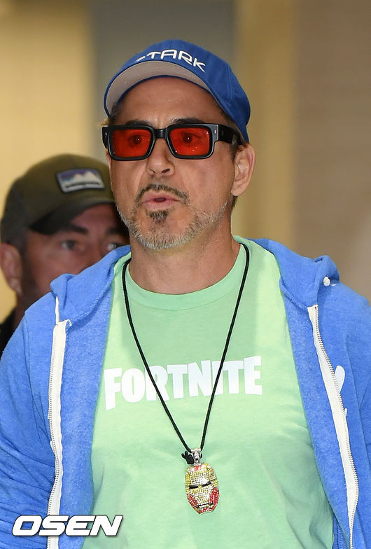 이날 로다주의 패션에서 가장 눈에 띈 부분은 바로 아이언맨 목걸이. 반짝반짝 빛나는 아이언맨 목걸이가 시선을 강탈했고, 로다주는 오른손으로 잡아서 취재진에게 자랑하기도 했다.