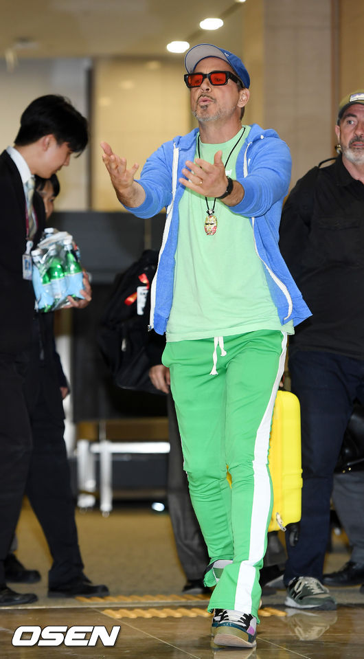 영화 '어벤져스: 엔드게임' 로버트 다우니 주니어가 전용기를 타고 4년 만에 내한했다. 김포공항에 도착한 그는 취재진을 향해 양 팔을 활짝 펴면서 감사한 마음을 드러냈고, 손키스도 날렸다.