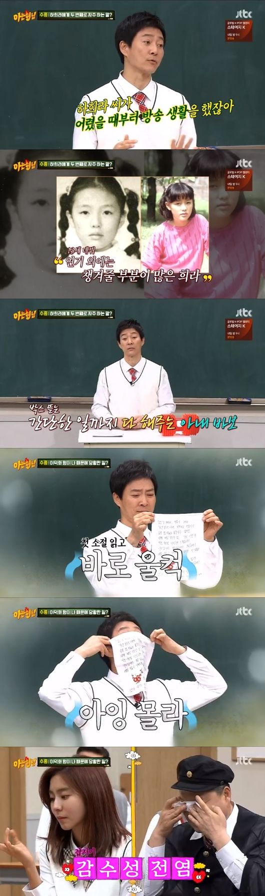13일 오후 방송된 JTBC '아는형님'에서는 국민드라마 '하나뿐인 내편'의 주연 최수종과 유이가 전학생으로 출연했다.