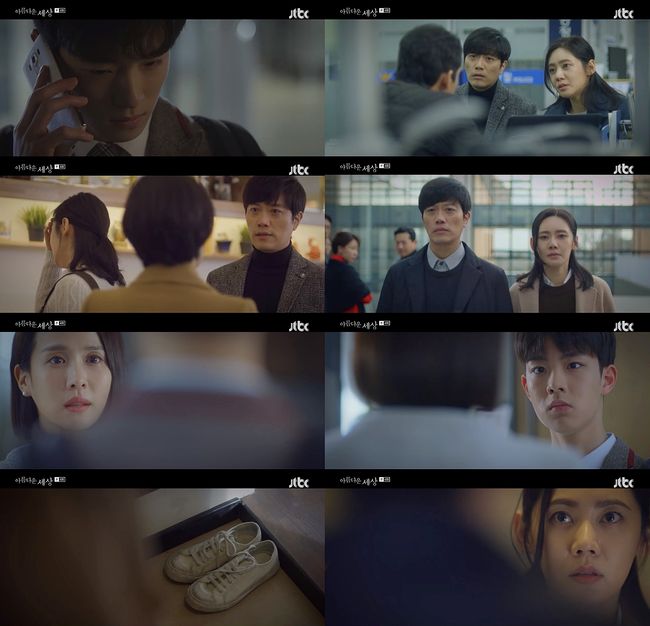 지난 13일 방송된 JTBC 금토드라마 ‘아름다운 세상’(극본 김지우, 연출 박찬홍, 제작 MI, 엔케이물산) 4회에서는 박선호(남다름)의 사고를 둘러싼 학폭위(학교폭력위원회)가 열렸다. 하지만 가해 학생들의 거짓말과 그 부모들의 무조건적 감싸기로 진실은 명명백백 드러나지 못했다. 그 가운데, 강인하(추자현)가 선호의 운동화에서 무언가를 발견한 듯 놀라는 모습이 엔딩을 장식하며 새로운 진실에 대해 이목이 집중되고 있다.
