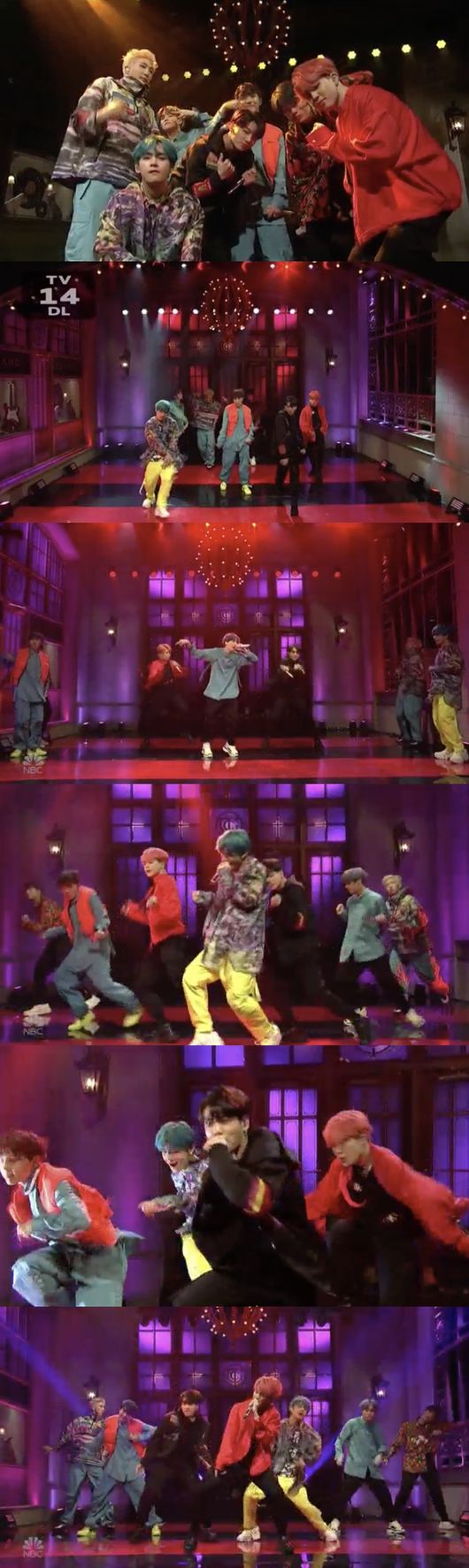 방탄소년단은 14일 오후(한국 시간) 방송된 미국 NBC의 ‘Saturday Night Live’(이하 SNL)에 뮤지컬 게스트로 출연해 새 앨범 ‘맵 오브 더 소울 : 페르소나(MAP OF THE SOUL : PERSONA)’의 타이틀곡 ‘작은 것들을 위한 시(Boy With Luv)’의 무대를 최초로 공개했다.